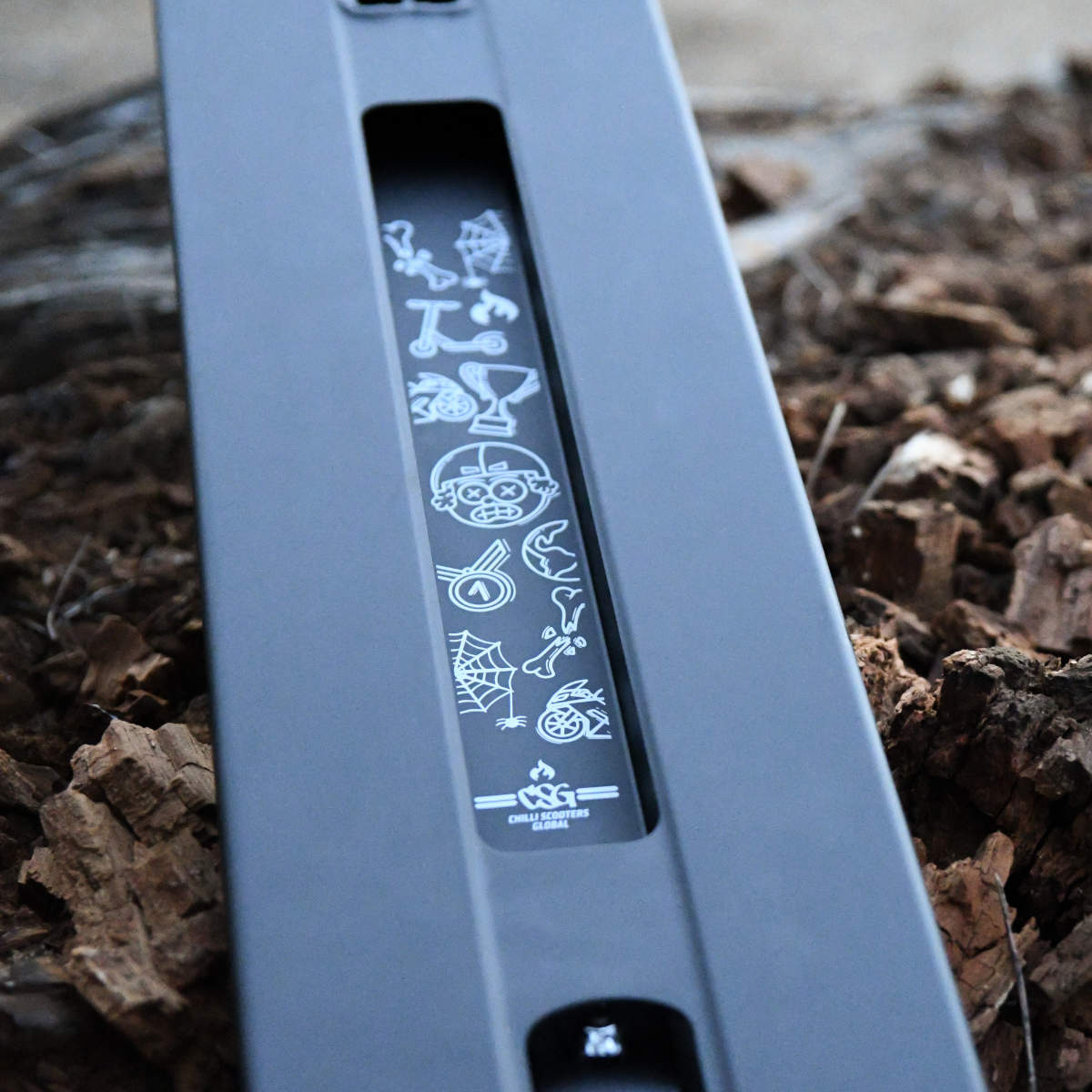 Chilli CSG Black Book je profesionální street deska na freestyle koloběžku, navržená českou legendou Matym Pekárkem. Ten si sám definoval ideální rozměry, tvar i design, aby odpovídaly jeho stylu jízdy — a teď je nabízí každému, kdo chce jezdit stejně jako on.