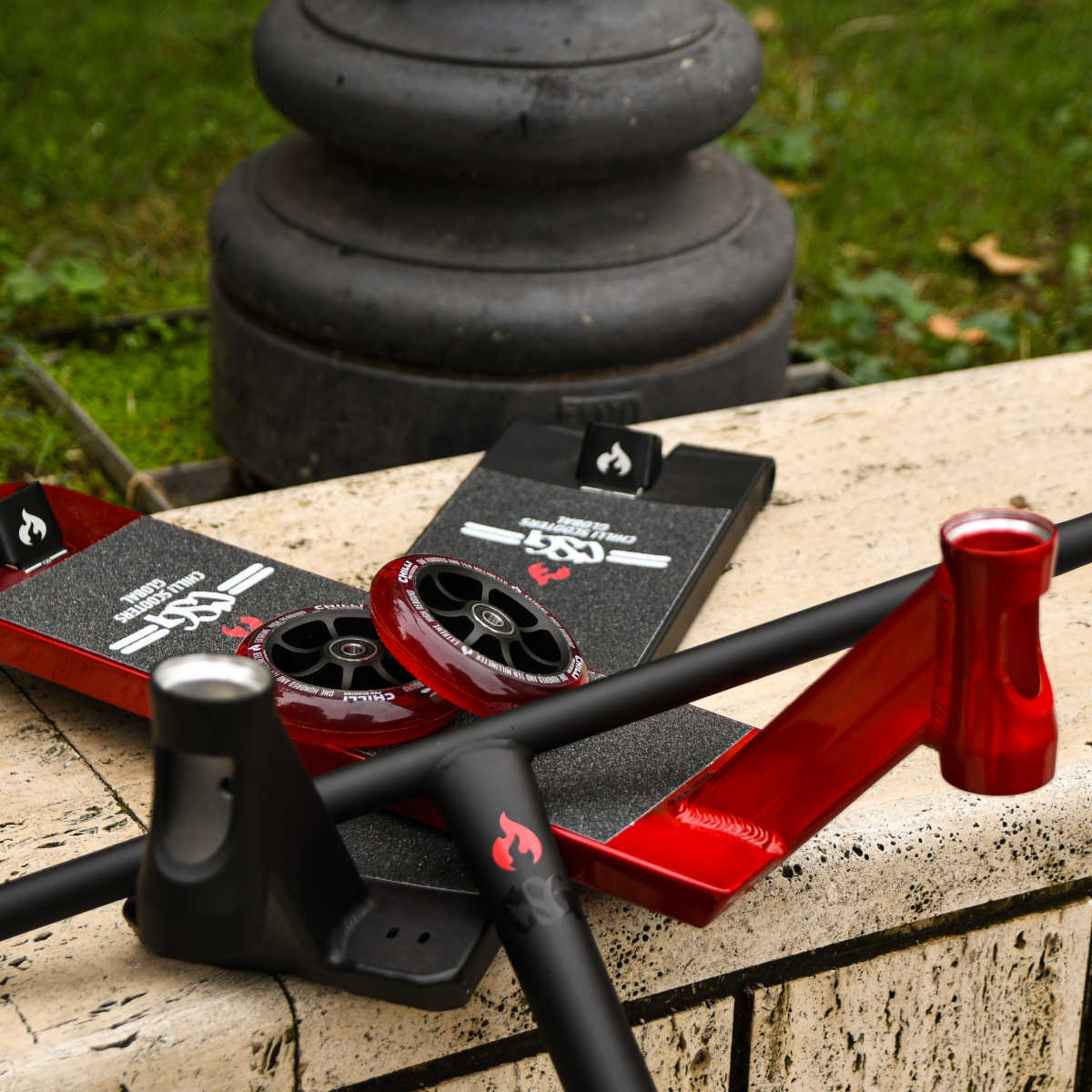 CSG (Chilli Signature Goods) je prémiová řada dílů pro freestyle koloběžky, navržená přímo jezdci z CHILLI Pro Teamu. Každý komponent vznikl podle jejich vlastních požadavků na rozměry, design a funkčnost — přesně tak, jak je sami jezdí. CSG umožňuje každému sestavit si vlastní custom koloběžku na úrovni profesionálů.